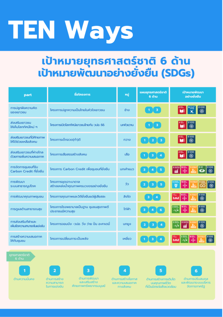 ขอชื่นชมและขอขอบคุณ นศ.วปอ. รุ่นที่ 66 ที่ได้ “ ลงมือทำ ” ตามที่ได้ มาพบปะ นศ.วปอ. 66 เมื่อช่วงแรกของหลักสูตร ผมเชื่อว่า นศ.วปอ. ที่มีผู้บริหารระดับสูงจากทุกองค์กร มาร่วมกันศึกษาในสถาบันแห่งนี้ เป็นการรวมตัวของ “ ผู้ให้ ” ( Givers among Givers ) ที่สามารถ สร้างพลัง สร้างสังคมแห่งการให้ แบ่งปันและช่วยเหลือให้กับคนตัวเล็ก ในสังคมไทย ที่จะเป็นส่วนหนึ่งในการลดความเหลื่อมล้ำในสังคมไทย อย่างแท้จริง ภายใต้แนวคิด One End : Ten Ways ของ นศ.วปอ. 66 ผมทราบว่า โครงการ The TEN ที่ นศ.วปอ. 66 ได้ร่วมกันคิด ลงมือทำ และทำได้จริง อย่างเป็นรูปธรรมเป็นการช่วยแก้ปัญหาที่เป็น pain points ของ ประชาชนอย่างตรงจุดตามความต้องการของกลุ่มเป้าหมายทั้งเยาวชน และชุมชน จากวันแรกถึงวันนี้ นศ.วปอ. 66 แต่ละหมู่ได้แสดงให้เห็นถึง ศักยภาพและเครือข่ายที่สร้างสรรค์ในการขับเคลื่อนโครงการ The TEN ให้สำเร็จตามวัตถุประสงค์อย่างมีประสิทธิผลผมมั่นใจว่าโครงการ The TEN นี้ จะเป็นต้นแบบให้กับทุกภาคส่วนที่จะนำไปขยายผลตั้งแต่ กระบวนการคิด การปฏิบัติ รวมทั้งการประเมินผล เพื่อนำไปสู่การประยุกต์ใช้ ให้ตรงกับความต้องการและสภาพปัญหาที่แตกต่างกันต่อไปขอขอบคุณ และชื่นชมพลังแห่งความร่วมมือร่วมใจของ นศ.วปอ. 66 ที่ได้ร่วมกัน เป็นกำลังสำคัญของสังคมและประเทศไทยในการพัฒนาประเทศไทยให้ “ มั่งคง มั่งคั่ง ยั่งยืน ” ตามยุทธศาสตร์ชาติ 20 ปี